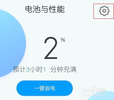 在电池与性能界面,点击右上角齿轮按钮进入。