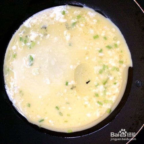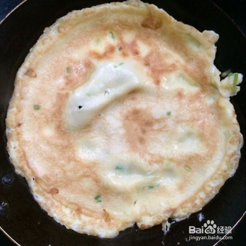 倒入鸡蛋面糊,自然流成圆饼状。火不要太大。中小火就可以。