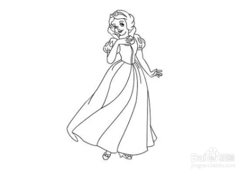 最后,是脚和鞋子,在裙子下面画出公主的脚部及鞋子。