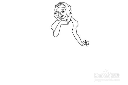 再在画好的头部下面画出公主的右容胳膊和手部。