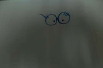 首先拿起笔和纸,我们先画老鼠的两只睁得大大的眼睛和眼睫毛。