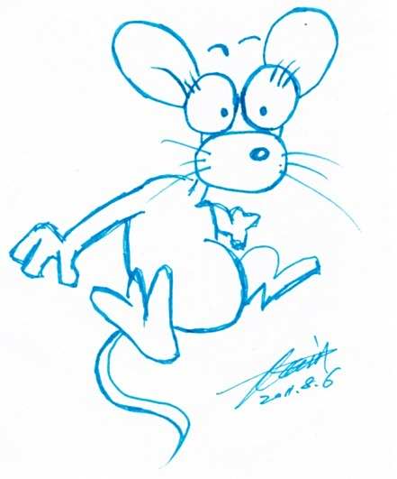 老鼠是一种啮齿动物,体形有大有小。如果老鼠在偷吃东西的时候发现了猫,他是怎么样的表情呢?下面我教人家画一只惊讶的老鼠。