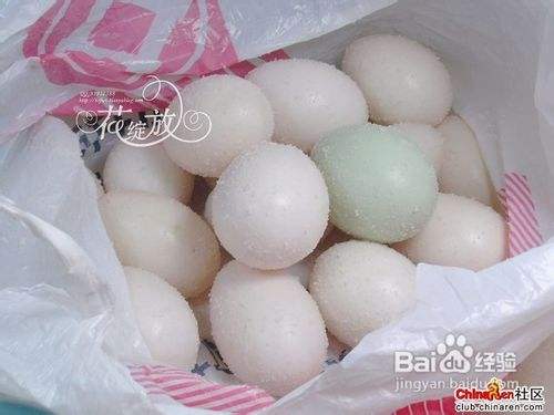 4.把风干后的蛋在白酒中裹一裹(二锅头之类的普通酒就可以),然后厚厚的裹上盐