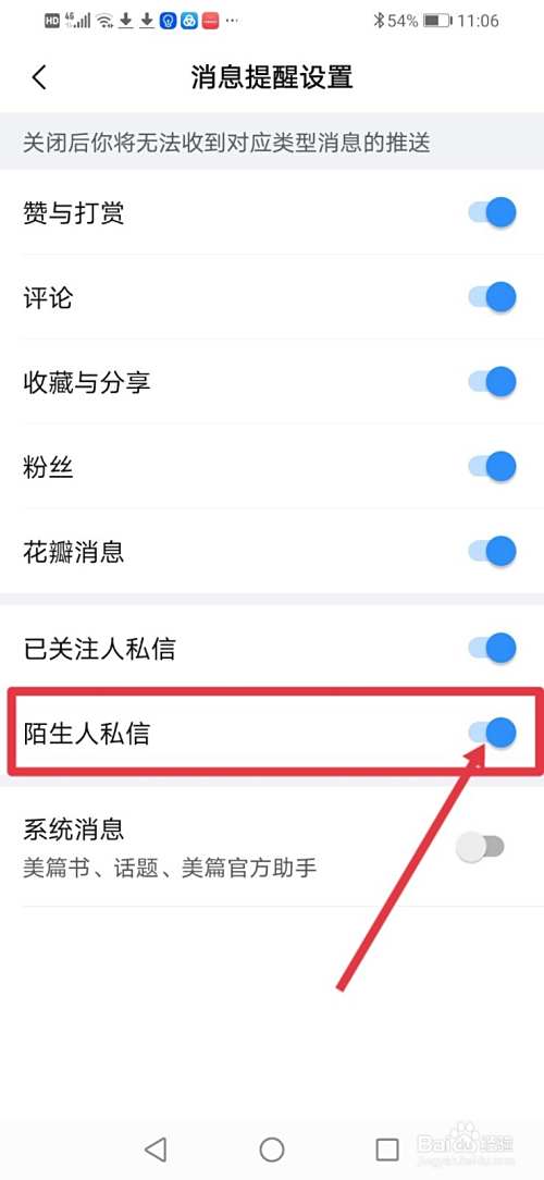 进入消息提醒设置,然后把【陌生人私信】的按钮开启即可。