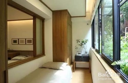 卧室。有设计师将12平米的阳台封闭起来,阳台就变身简约的卧室。其实购置一张可折叠的床,铺上床单,用小木凳做床头柜,就可以隔出一间单人卧室。
