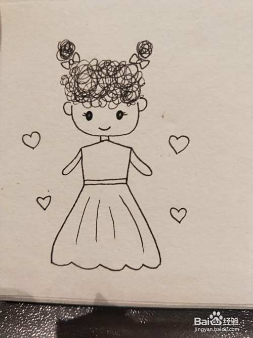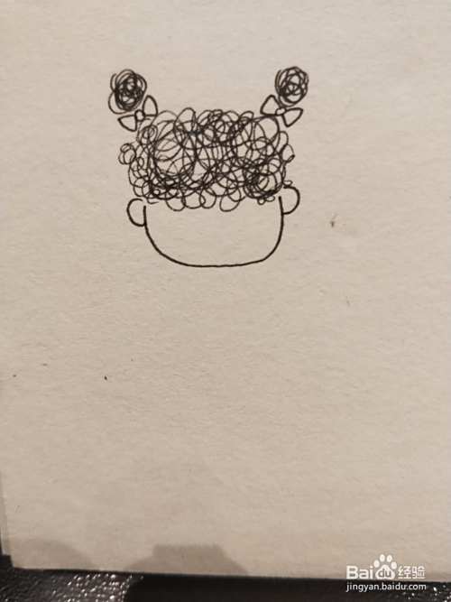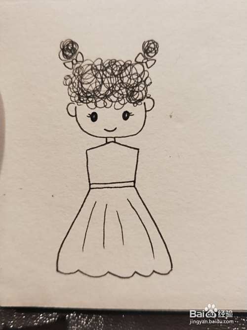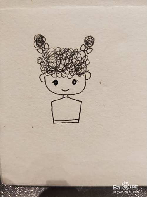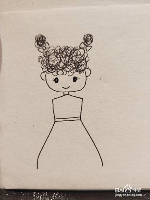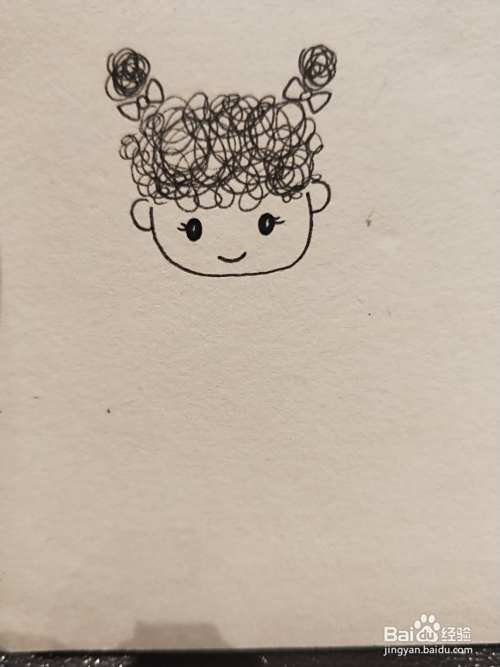 用勾线笔随意的打圈,画出小女孩的头发和扎起的丸子头。