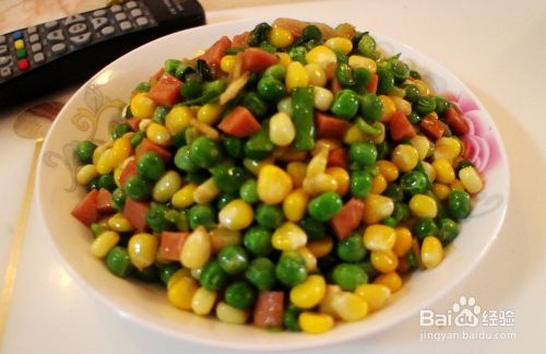 豌豆炒玉米,加入香香的火腿,色彩鲜亮;豌豆软糯、玉米清香、火腿味足,整个炒制过程不过5分钟,无论老人小孩都是极适合的菜品,我想所谓的色香味俱全大概就是说的这道菜吧。