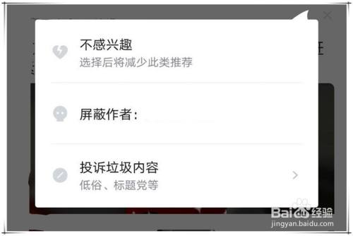 四、点击上面的【不感兴趣】或【屏蔽作者】。