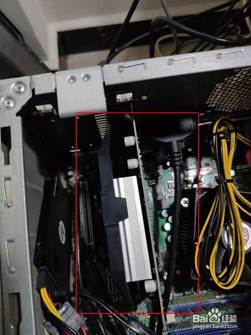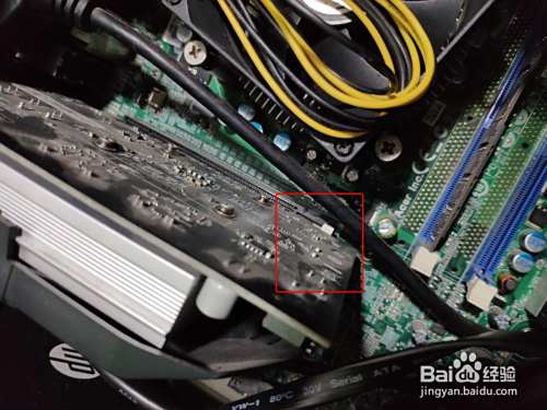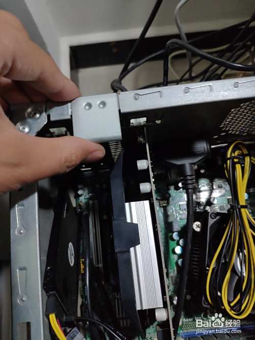 打开显卡挡板后,按一下显卡接口后面的白色按钮,即可拆下显卡。