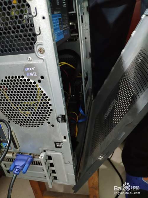弄下主机后盖螺丝,打开后盖。