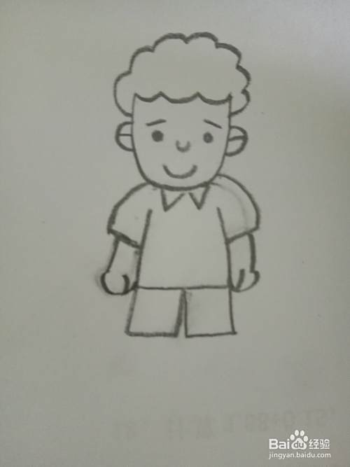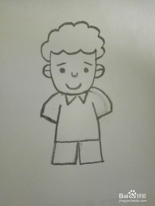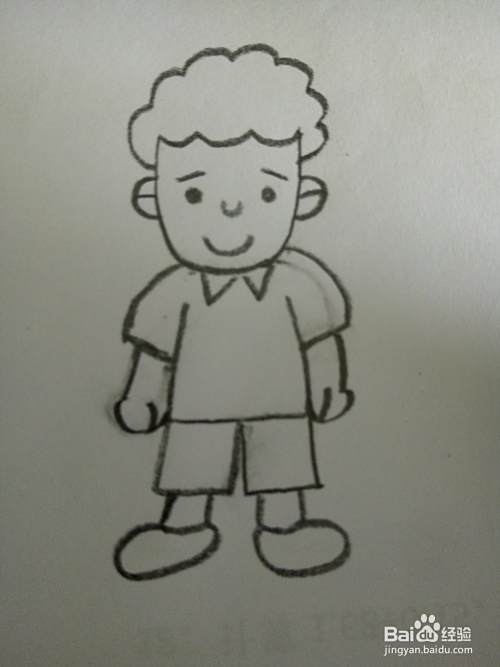 最后画上小男孩的腿和鞋子。