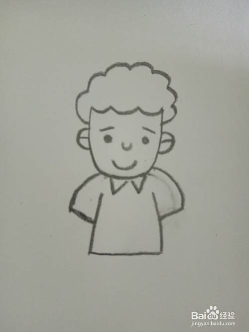 画出小男孩的上衣和衣领。