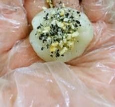 糯米团冷却后,取一小团,包入馅料,像包汤圆一样,包好后外面还要沾一层馅料