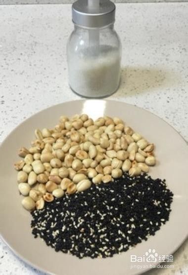 把黑白芝麻,花生米在锅里炒熟,用粗砂糖,最好用小火,不要炒糊了