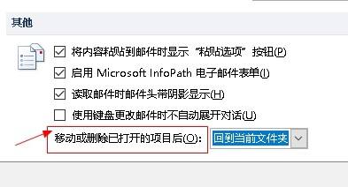 介绍outlook如何设置删除项目后回到当前文件夹。