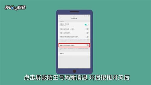 2点击“骚扰拦截”,点击“屏蔽陌生号码新消息”的开启按钮,开关后就可以拒绝广告。