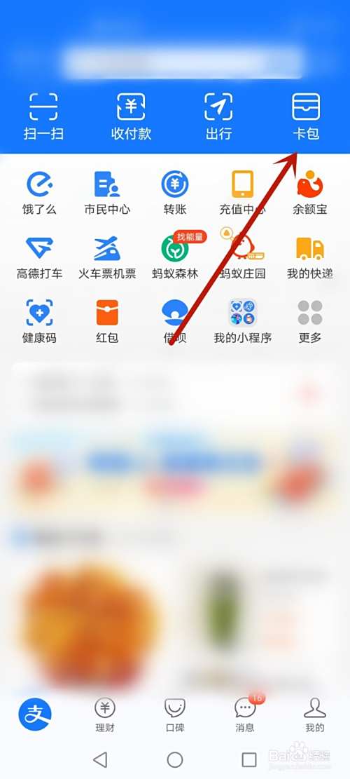 打开支付宝,点击【卡包】。