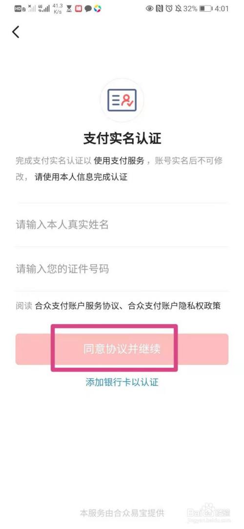 进入新页面,点击”同意协议并继续“去进行实名验证即可。