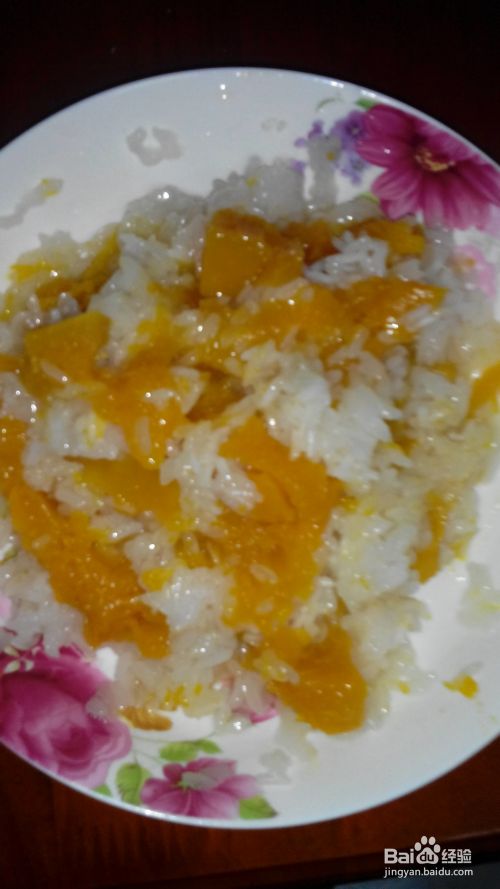 混匀,让南瓜和糯米搅拌在一起,放少许水。