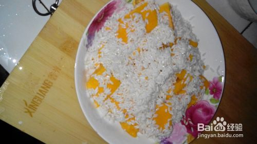 然后把南瓜片和侵泡的糯米放在盘子里