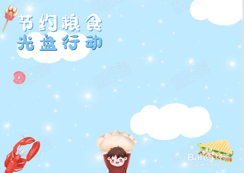 用笔在左上角写上节约粮食、光盘行动几个大字,