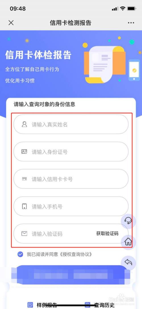 输入5要素信息,然后输入验证码即可*(提示,必须有信用卡才能查询,否则无法查询到数据)