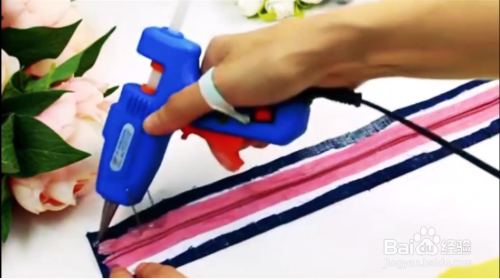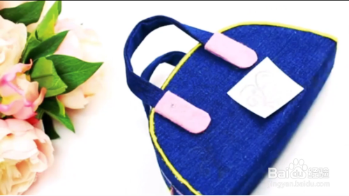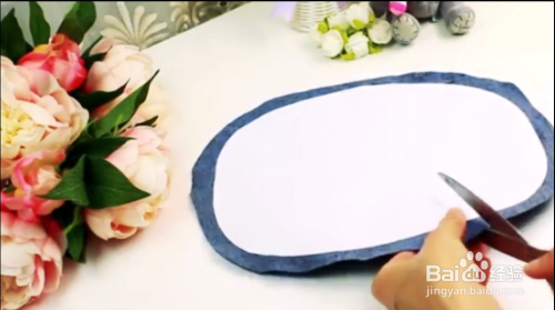 然后再用牛仔裤剪一个长条,将它粘到纸片上,然后粘上拉链即可,然后再粘到椭圆的牛仔裤上即可再装上带子,一个包包就出来了