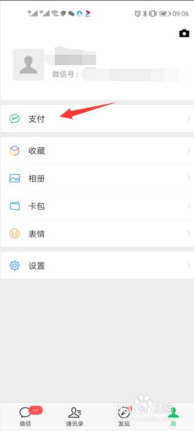 首先,在微信界面个人中心页面里,点击“支付”选项。