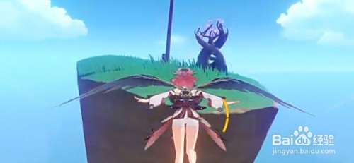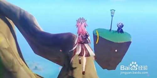2、这个时候我们就能看到对面的悬浮岛上有一个雷树。