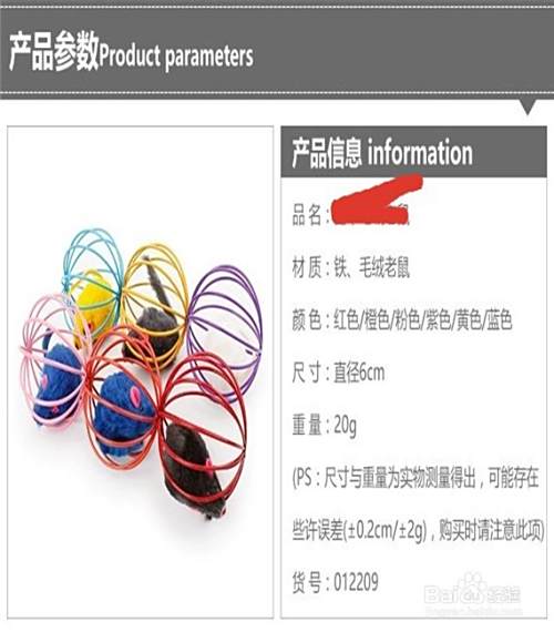 下一步,我们需要注意猫用老鼠球的尺寸大小规格,比如材质,重量,适用范围,颜色分类等。