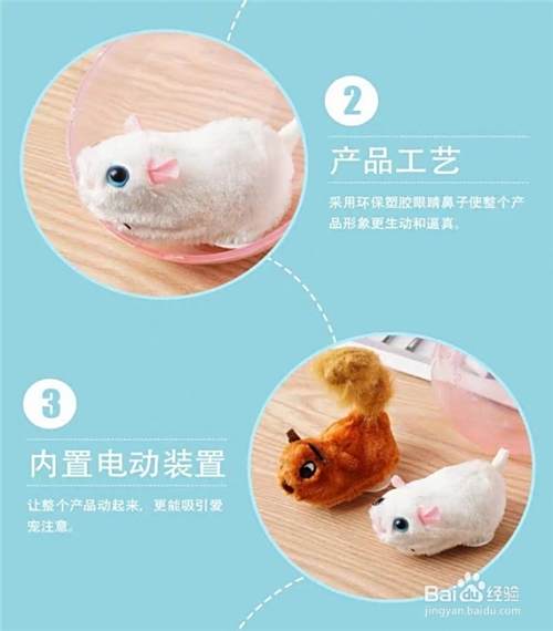 第二步注意猫用老鼠球的工艺,比如采用环保塑胶眼睛使得老鼠更加仿真,还有是否有内置电动装置。