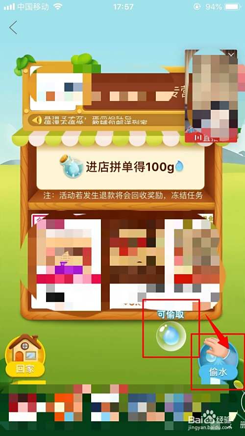 此时,如果好友中有水滴显示的,表示可以去好友页面偷水,点击进入