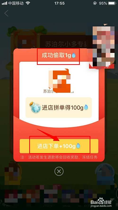 之后就会显示偷取的水量,如果拼单的话还会额外获得水量