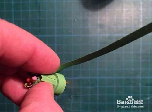 第8步:接着用另外一根细细的衍纸纸条来将底下包好