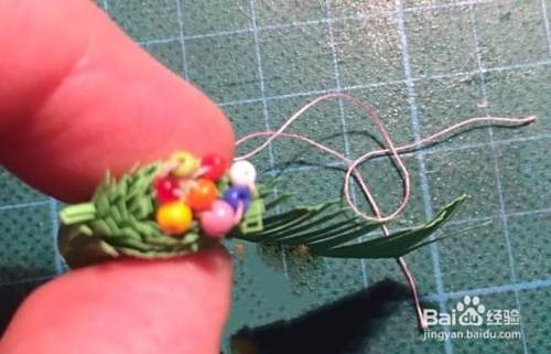 第4步:然后就可以慢慢的卷起来了,同时将小珠子串到线上面,然后夹在里面
