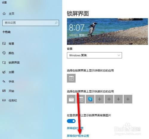 点击个性化里面的锁屏选项。