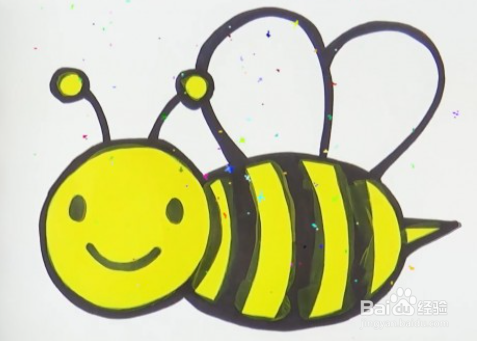 第八步,将蜜蜂身体的色斑涂上黑色;