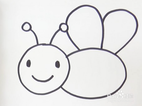 第四步,我们在蜜蜂笑脸的右侧画出一个大大的椭圆作为蜜蜂的身体;