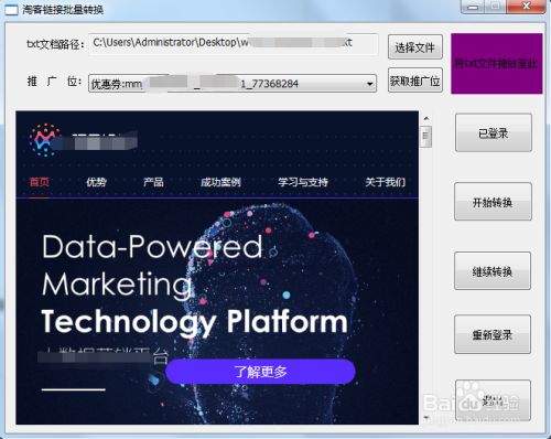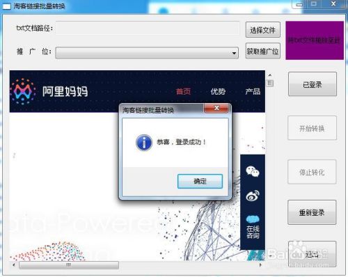 淘宝客必备软件,现在网上有很多做淘宝客的,做的有好的,也有刚开始做的,最主要的一个环节就是推广,但比这更重要的是如何将大量的好的商品或是带有优惠券的商品转换成自己的淘宝客链接,否则,到最后一不小心就给别人做了“嫁衣”,本款软件完全批量生成自己的淘客链接,有了这一步的保障,接下来只需要将自己的淘宝客链接发出去,就可以有意外的收获哦,当然不能一劳永逸哦,天道酬勤永远是真理,希望本款软件祝君生意兴隆!