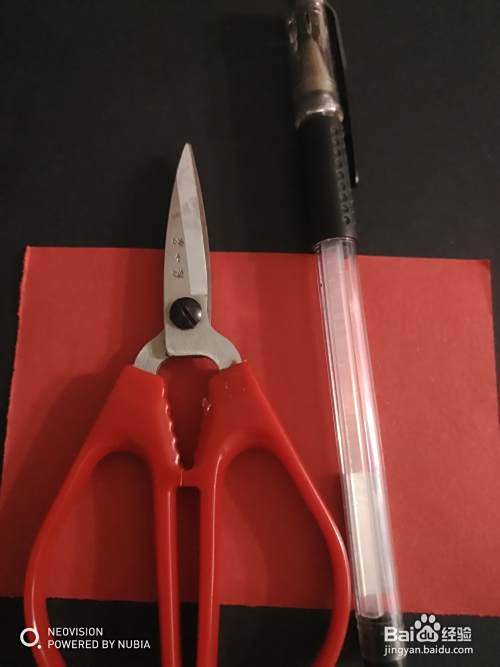 第一步,我们先准备好一张纸、笔和一把剪刀。