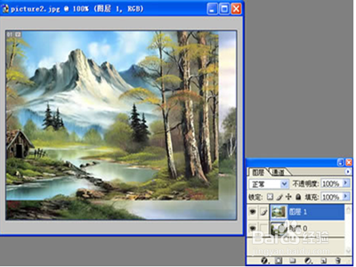 选中picture1.jpg,打开图层面板,按住SHIFT键的同时将图层面板中的背景缩略图,拖到picture2.jpg的窗口内,并把背景层转为普通层。