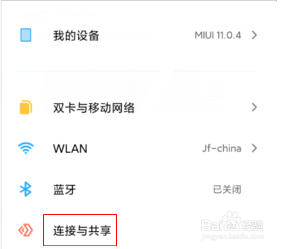 进入连接与共享界面,点击重置WLAN、移动数据网络和蓝牙设置进入。