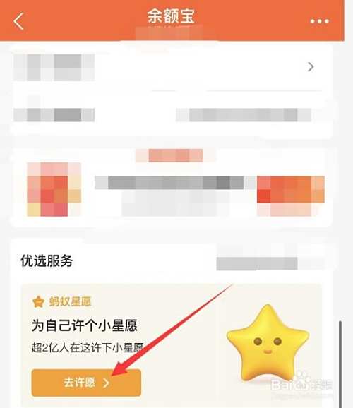 然后在【余额宝】页面中,点击【蚂蚁星愿】下方的【去许愿】按钮