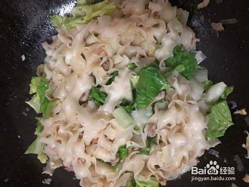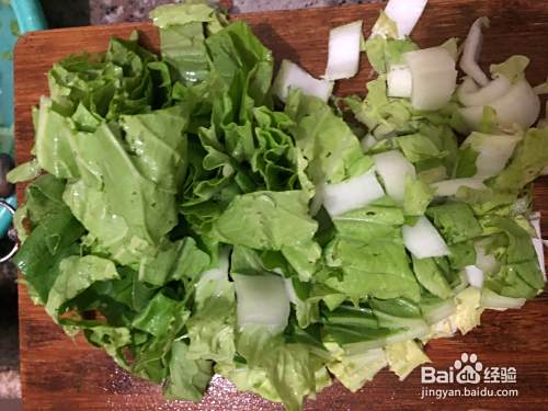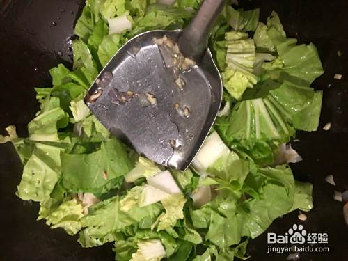 3、放入青菜(加点油),拌下,盖锅,焖2-3分钟。