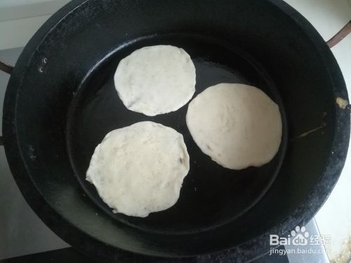 开火,用小火把一面烤烙成金黄,再把反面翻过来,继续烤烙至熟。