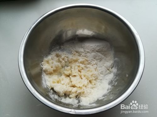 把面粉倒在盆里,给面粉里倒入一些开水,用筷子迅速搅匀把面烫一下,再把烫面揉在一起,和成面团,饧上20分种备用。