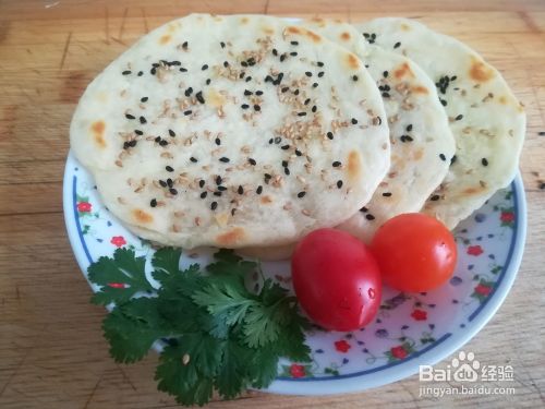 然后取出放入盘子里,这样香味浓郁的芝麻烧饼就做好了,一道美食装盘上桌,好吃哦!