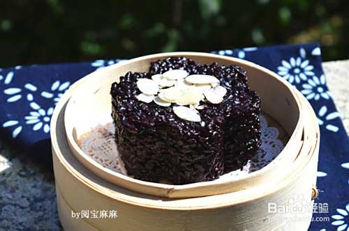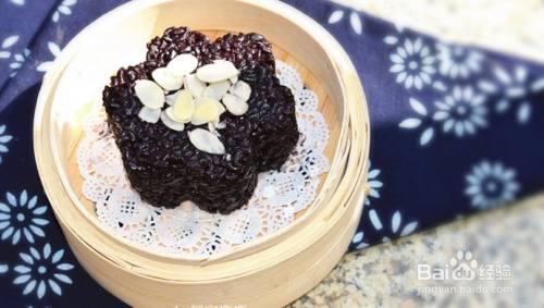 脱模后在黑米糕上撒上适量扁桃仁就好啦~!