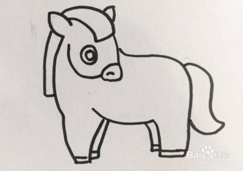 接下来画出小马后半身和尾巴,画上眼睛和蹄子,以及背部的毛。