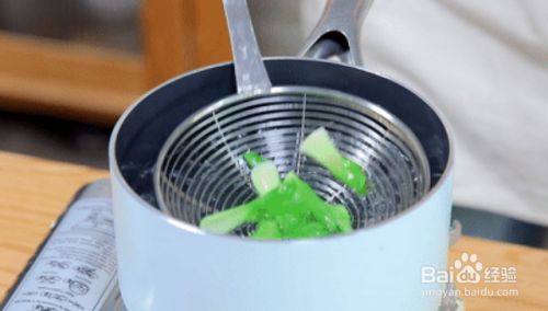 然后将油菜焯水,捞出备用。这个配菜可以用油菜、菠菜、娃娃菜等都可以的。